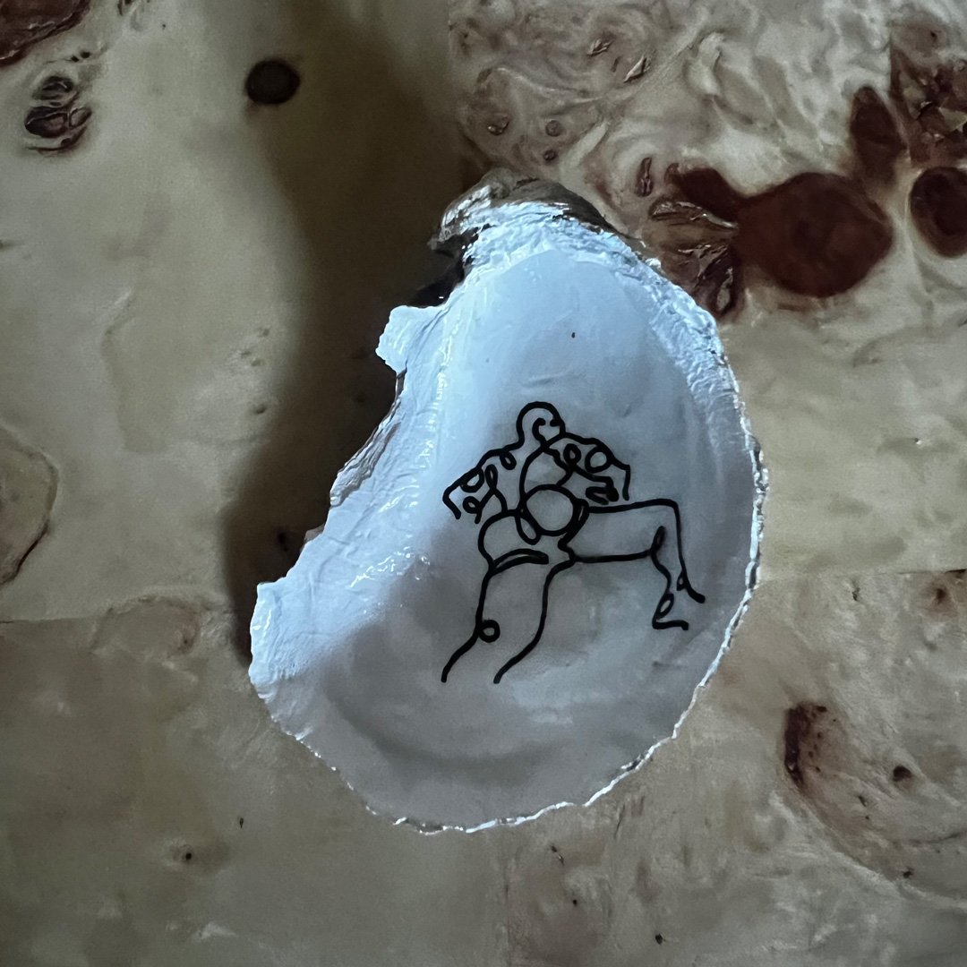 Boysters, a one-of-a-kind piece of oyster art lovingly drawn, painted, gilded, and assembled by hand. Each unique creation is inspired by the vibrant and diverse influences of Gay intimacy and love.
