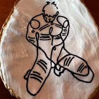 Boysters, a one-of-a-kind piece of oyster art lovingly drawn, painted, gilded, and assembled by hand. Each unique creation is inspired by the vibrant and diverse influences of Gay intimacy and love.